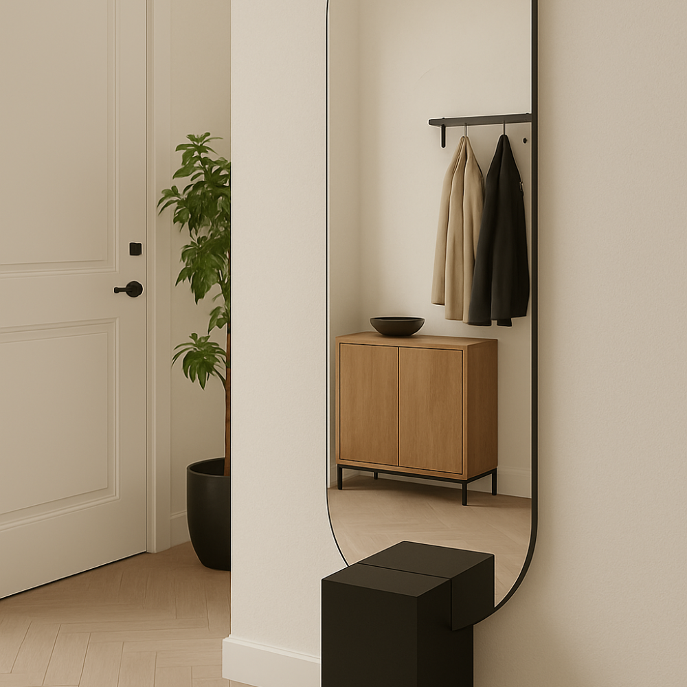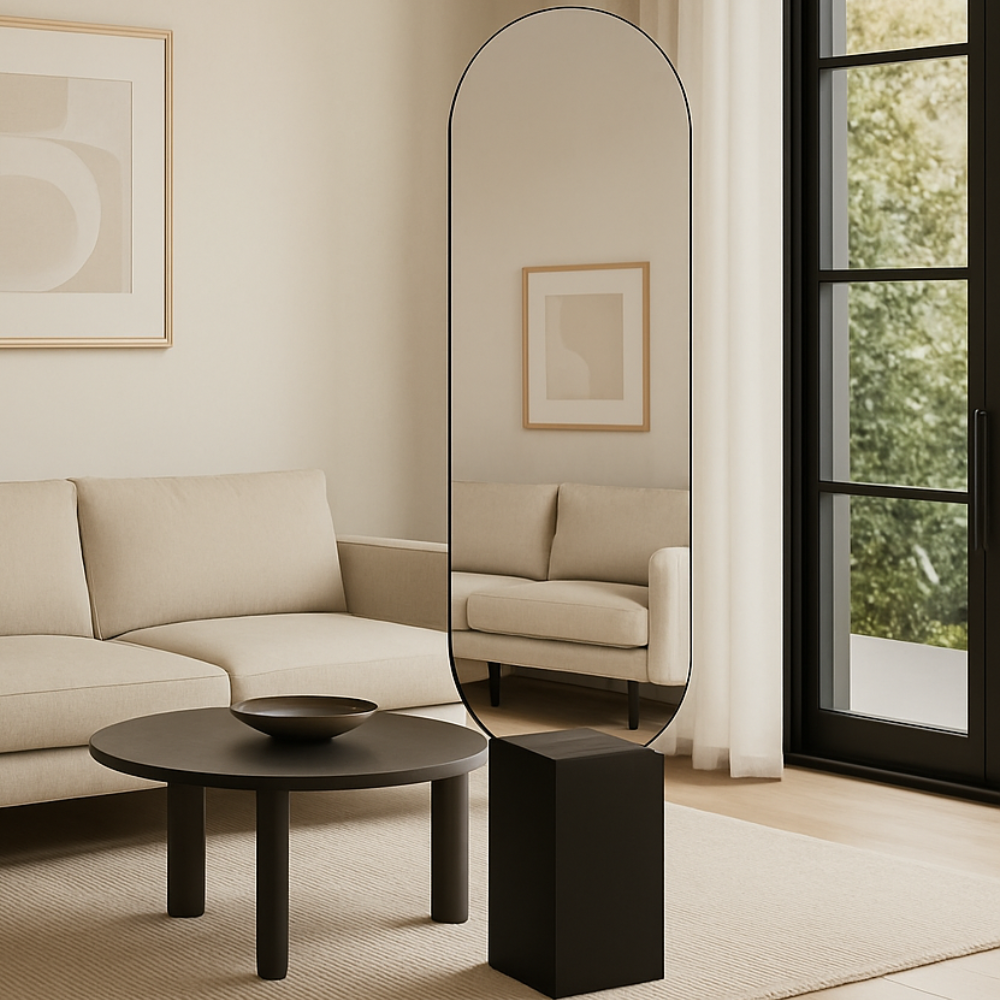 Breng natuurlijke elegantie in huis met de MIRRORS AND MORE MISOU MATHILDA Spiegel. Deze prachtige staande spiegel met organische, ovale vorm is ontworpen om perfect op te gaan in een modern interieur. Met een afmeting van 180 x 45 cm is hij ideaal als passpiegel in de slaapkamer, hal of kleedkamer, terwijl hij ook als decoratieve wandspiegel een verfijnd accent toevoegt. De moderne look wordt versterkt door het slanke frame van MDF in houtlook, wat zorgt voor warmte en rust in de ruimte. De vloeiende lijnen van de spiegel geven een zachte, minimalistische uitstraling en maken de MATHILDA tot een tijdloze blikvanger.